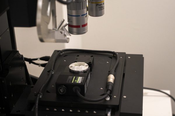 すでにあった装置に独自の改良を重ねて製作されたものですが、マウスを1 ミリメートル動かすと、装置の先端が100ナノメートル動くようになっており、非常に高い精度で正確にコントロールできるようになっています。