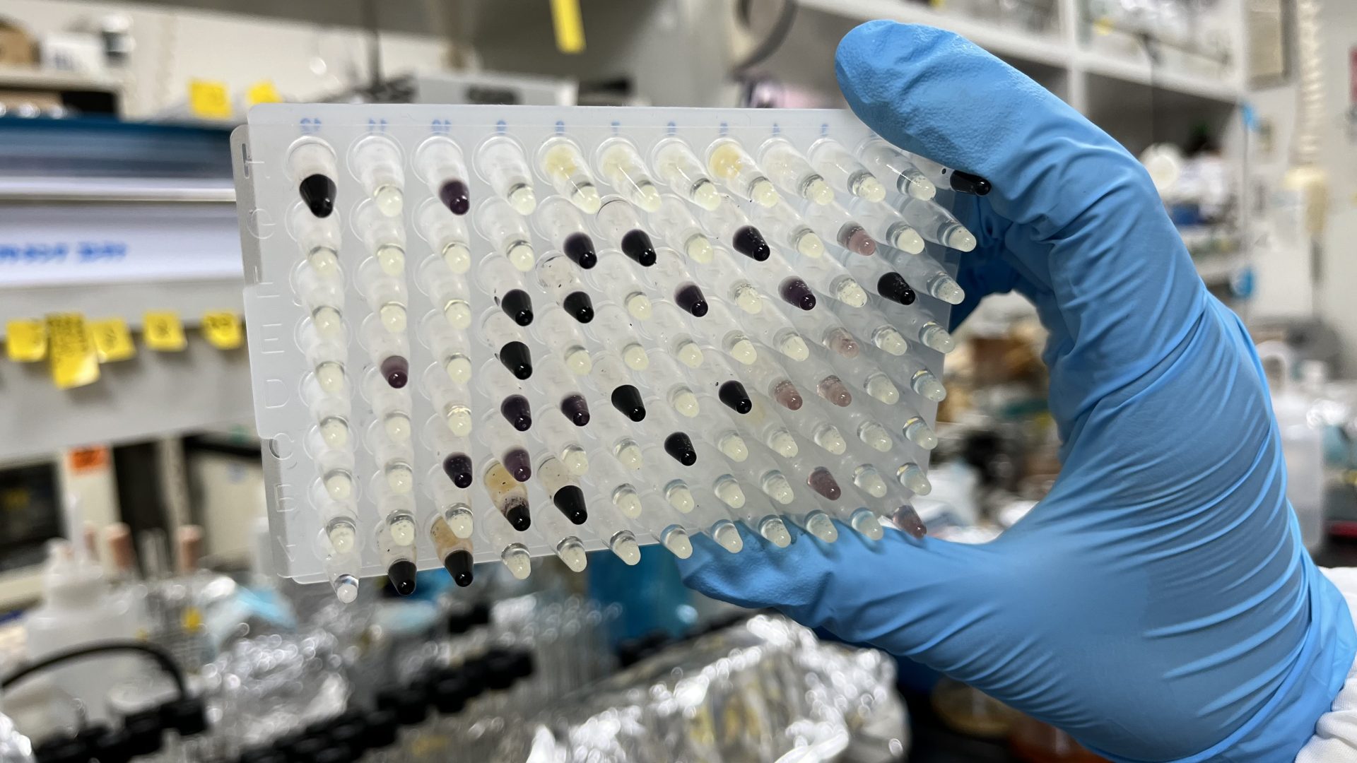 全国から様々な土のサンプルを集めるのも大変ですが、それ以上に難しいのが、その中から有効な微生物、つまりプラスチック原料となる「代謝物」を作る微生物だけを抽出する作業です。1つのサンプルに数十億もの微生物が存在し、そのサンプルが無数にあるとなると、それらを一つ一つ分析していては時間がどれだけあっても足りません。