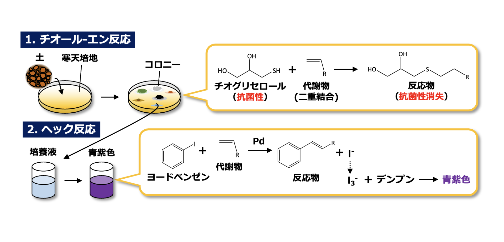 先ほど抽出した微生物に対してヘック反応という方法を使い、さらに精度の高いスクリーニングをかけています。