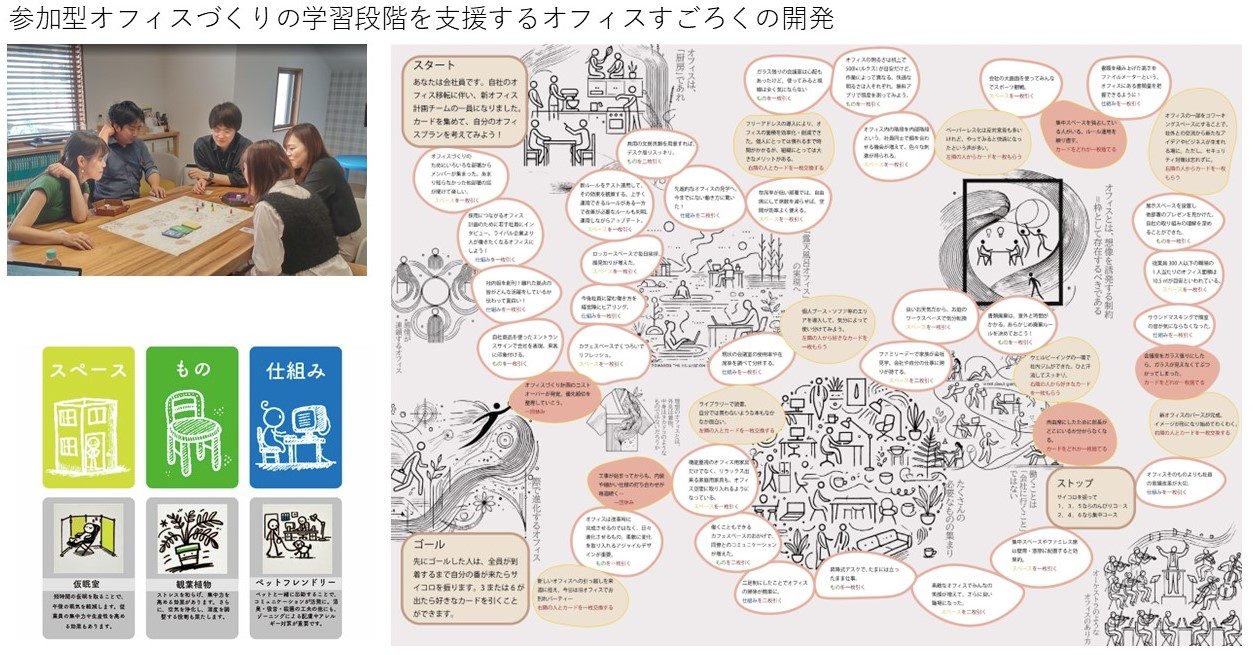 その試みの一つとして開発したのが、ユーザー参加型のワークプレイスづくりで活用するスゴロクです。ワークショップツールの開発の代表例ですね。