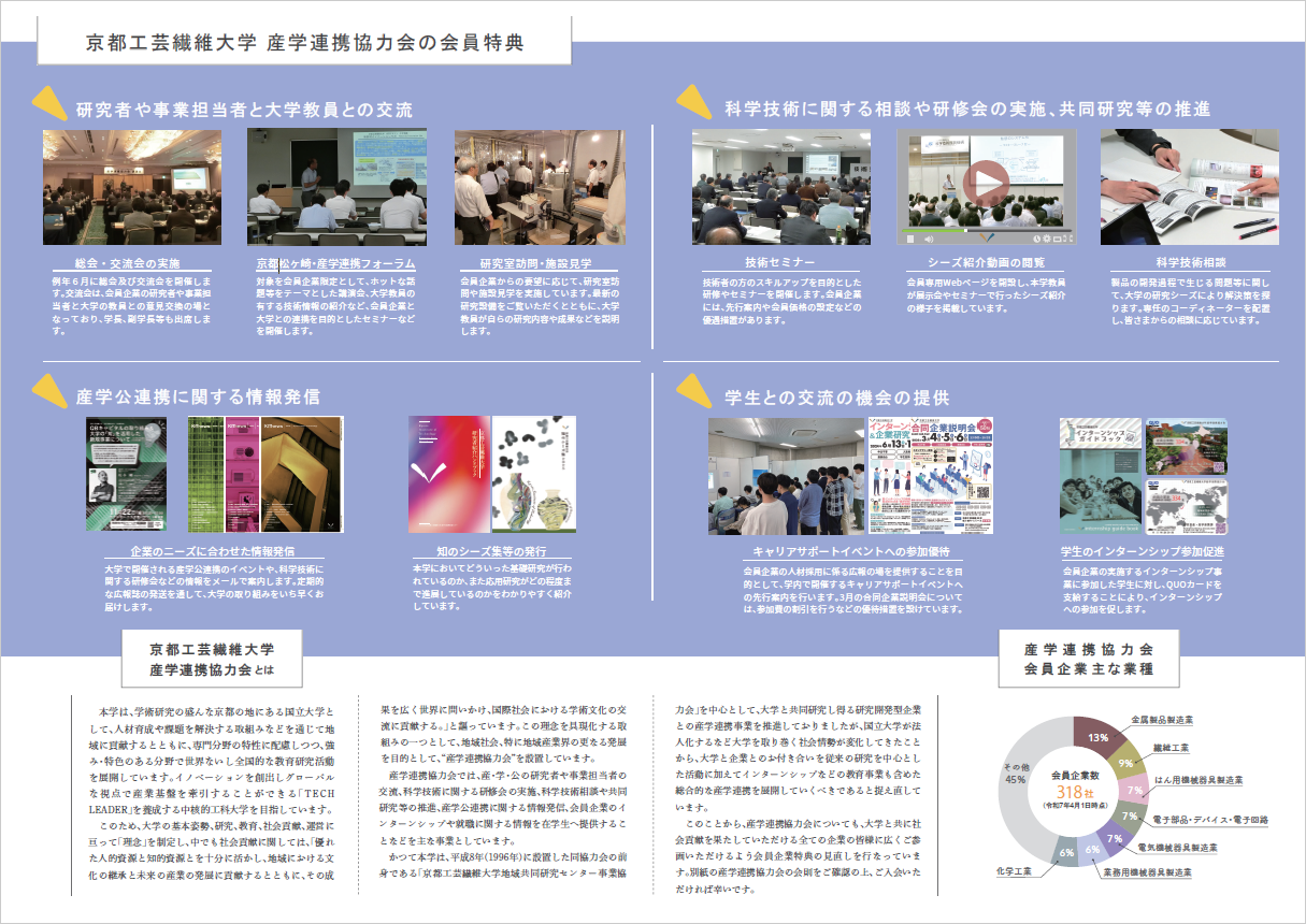 産学連携協力会では、産・学・公の研究者や事業担当者の交流、科学技術に関する研修会の実施、科学技術相談や共同研究等の推進、産学公連携に関する情報発信、会員企業のインターンシップや就職に関する情報を在学生へ提供することなどを主な事業としています。